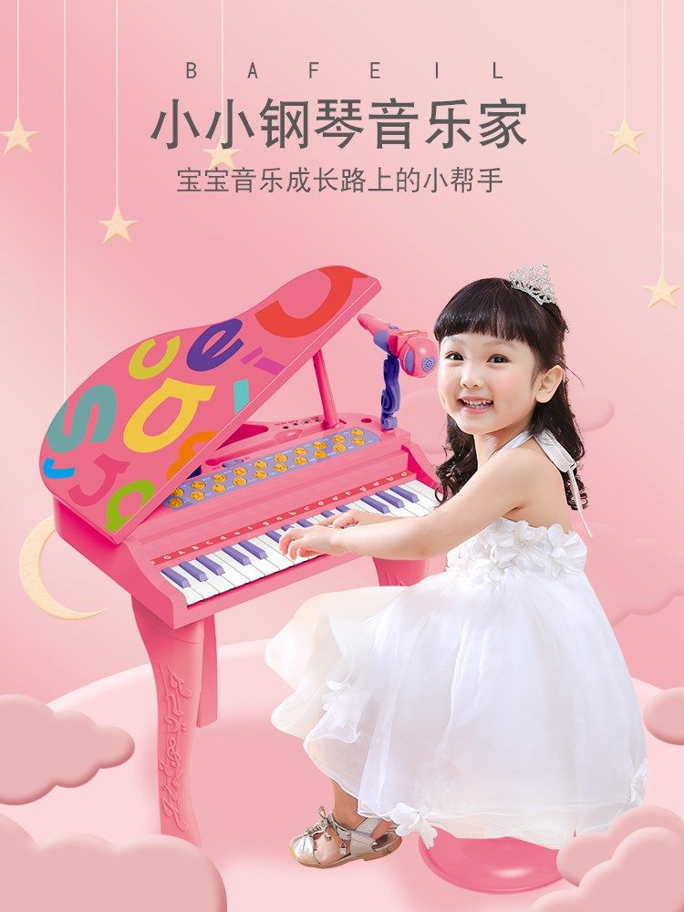 贝芬乐儿童电子琴带麦克风女孩早教音乐宝宝钢琴启蒙玩3岁男女孩