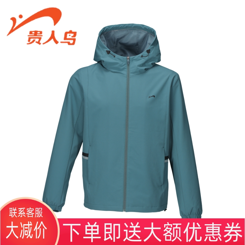 贵人鸟男装风衣2022春季新款拉链梭织防风防雨连帽运动服A421G53