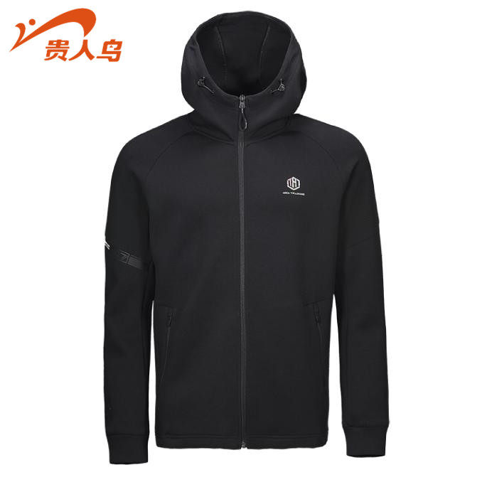 贵人鸟正品男款2020春秋休闲运动男针织带帽拉链卫衣外套4401017
