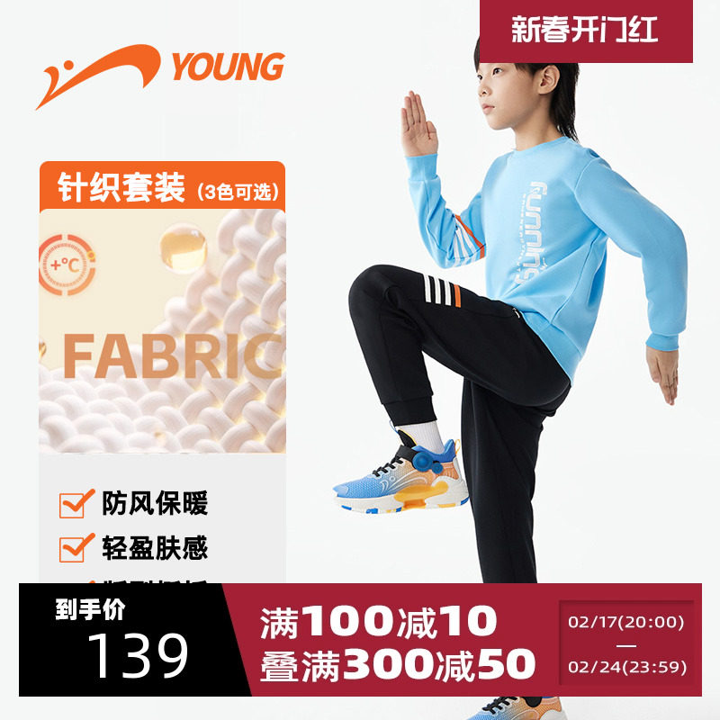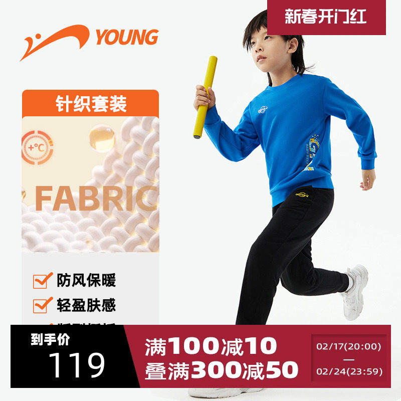贵人鸟童装男童针织套装2023秋新款儿童运动上衣裤子两件套保暖