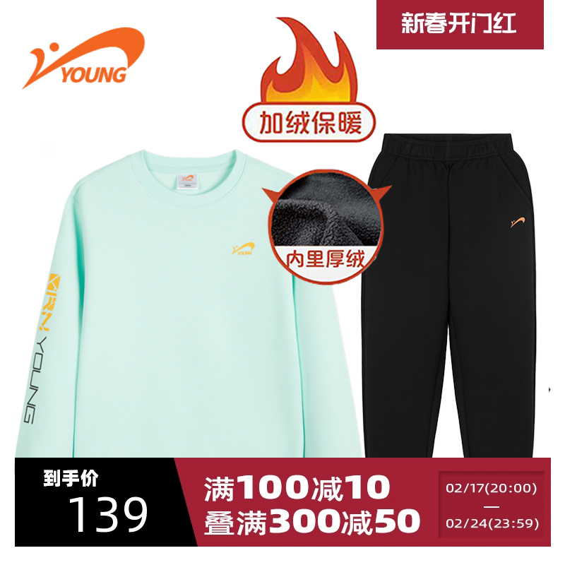 贵人鸟童装2023新款秋冬装男女童套装加绒卫衣卫裤防寒保暖裤子