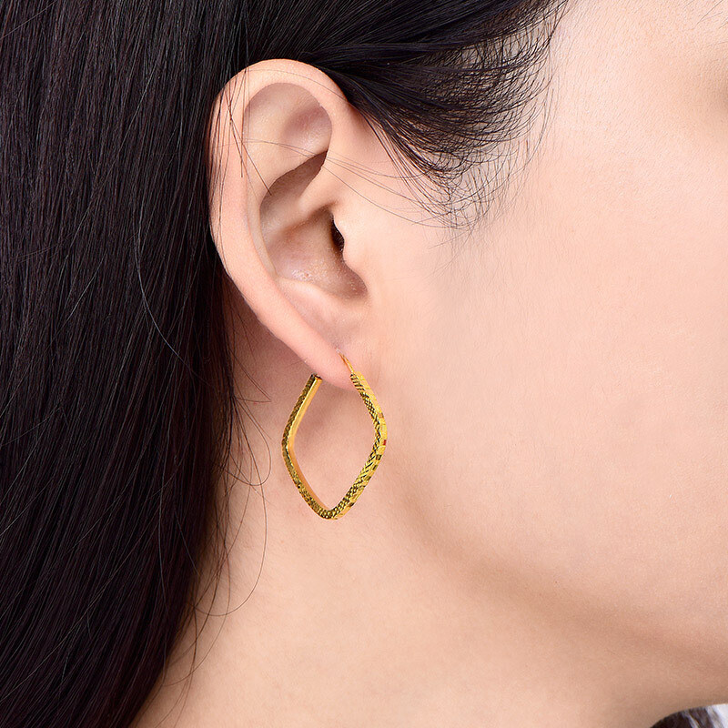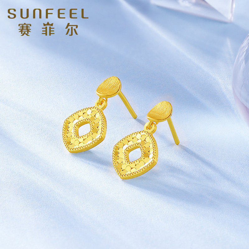 赛菲尔黄金耳饰足金999.9菱形耳钉5G黄金圆环蜂巢耳环镜光金送礼