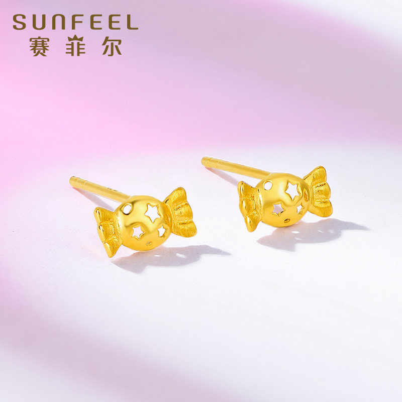 赛菲尔黄金耳饰5G黄金糖果耳钉足金999甜美耳环养耳棒镜光金系列