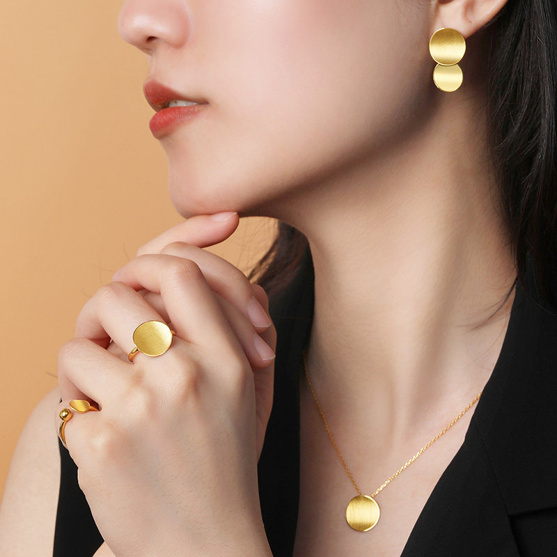 赛菲尔黄金光面耳钉四季平安足金999.9耳环耳饰几何百搭耳圈送礼