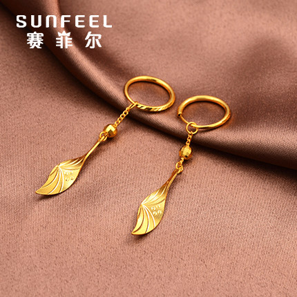 赛菲尔足金999.9黄金耳饰 时尚黄金叶子女款耳吊耳环新款节日礼物
