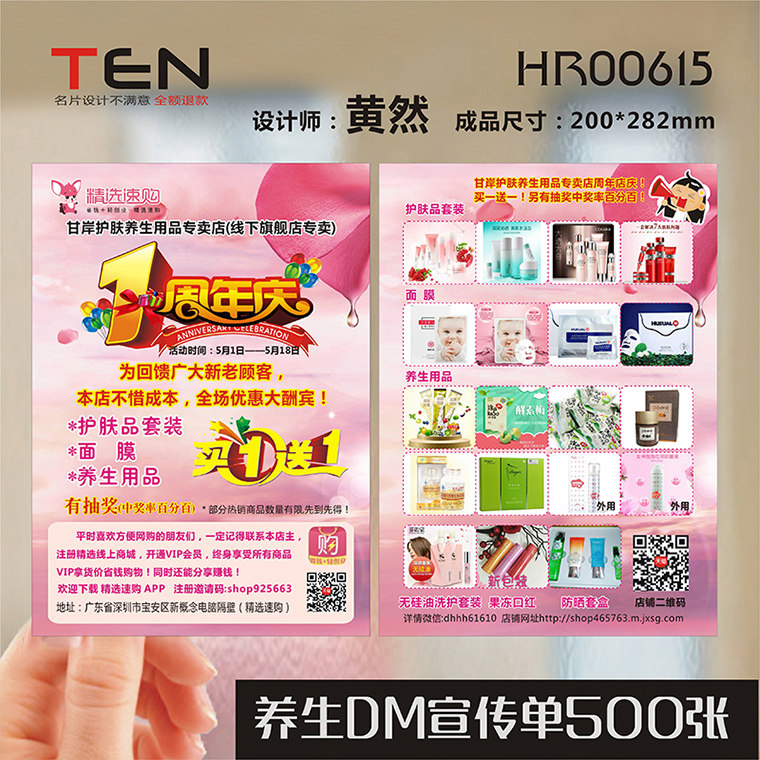 定制韩式半永久美容院化妆品造型招生宣传单名片设计制作HR00038