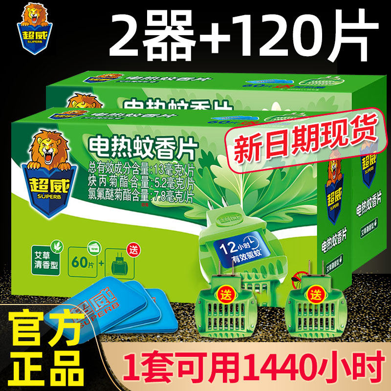 超威电热蚊香120片家用插电式驱蚊加热器灭蚊片艾草清香型家庭用
