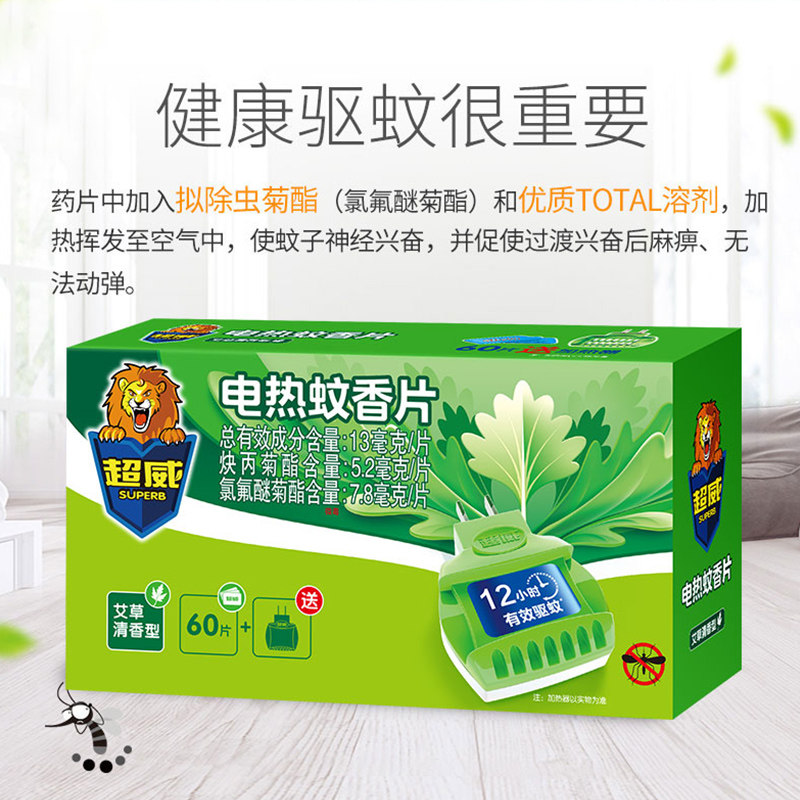 超威电热蚊香片60片1器电蚊香艾草清香驱蚊家用灭蚊插电式蚊香片
