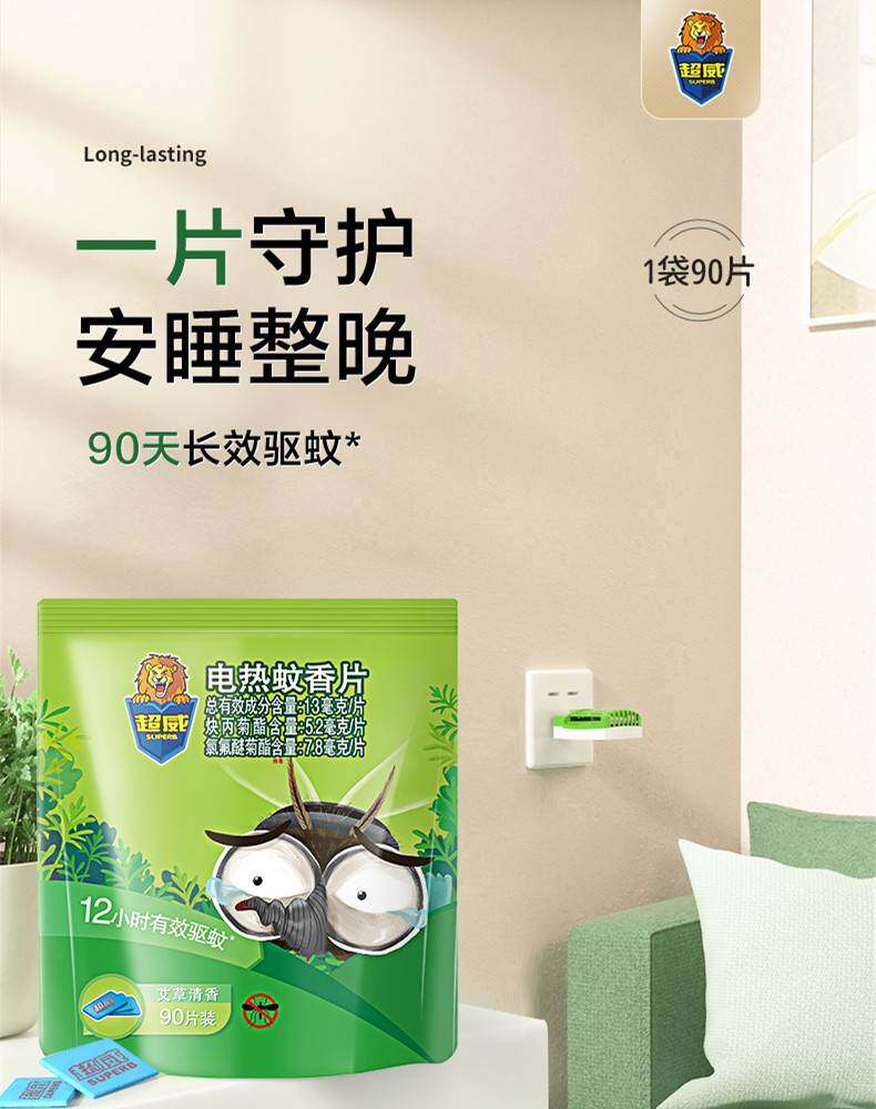 超威电热蚊香片家用插电式艾草孕妇婴儿驱蚊灭蚊90片加热器非无味