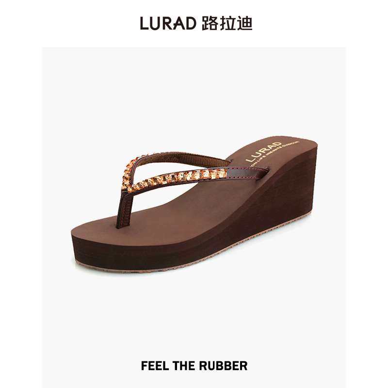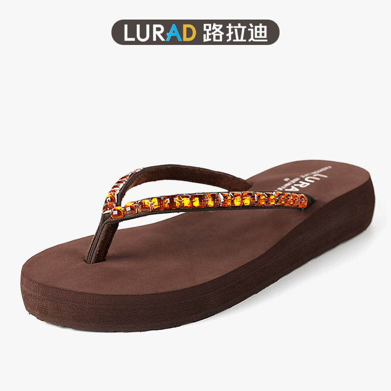 路拉迪中跟水砖女士人字拖鞋夏季防滑沙滩凉拖厚底坡跟时尚夹拖潮