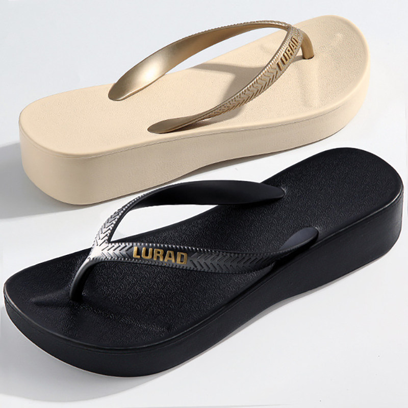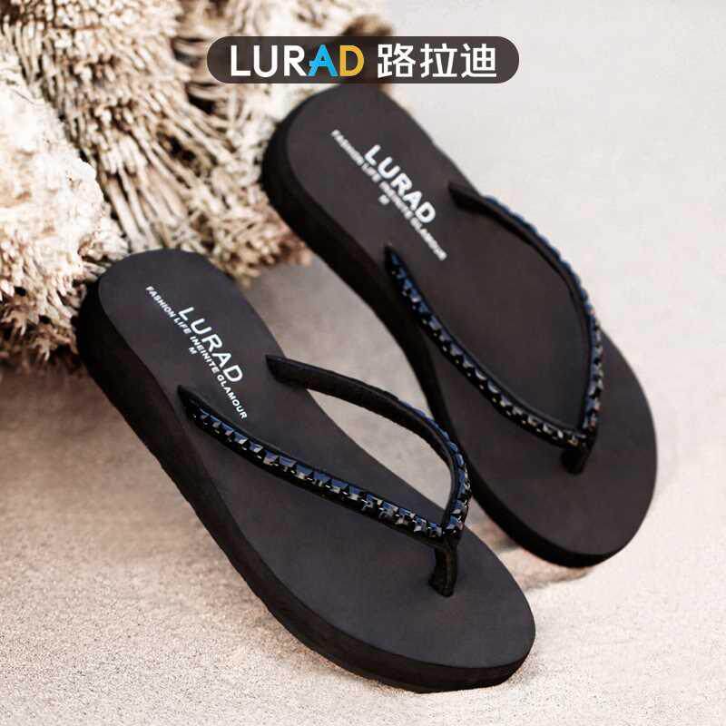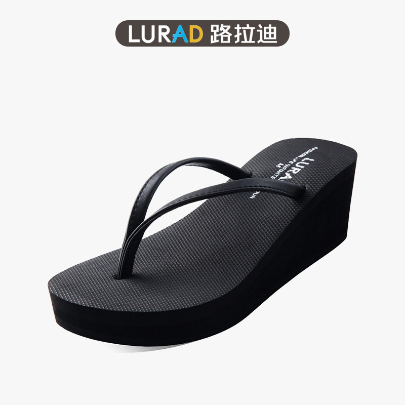 路拉迪厚底人字拖女坡跟夏防滑中跟外穿夹脚凉拖鞋海边简约沙滩鞋