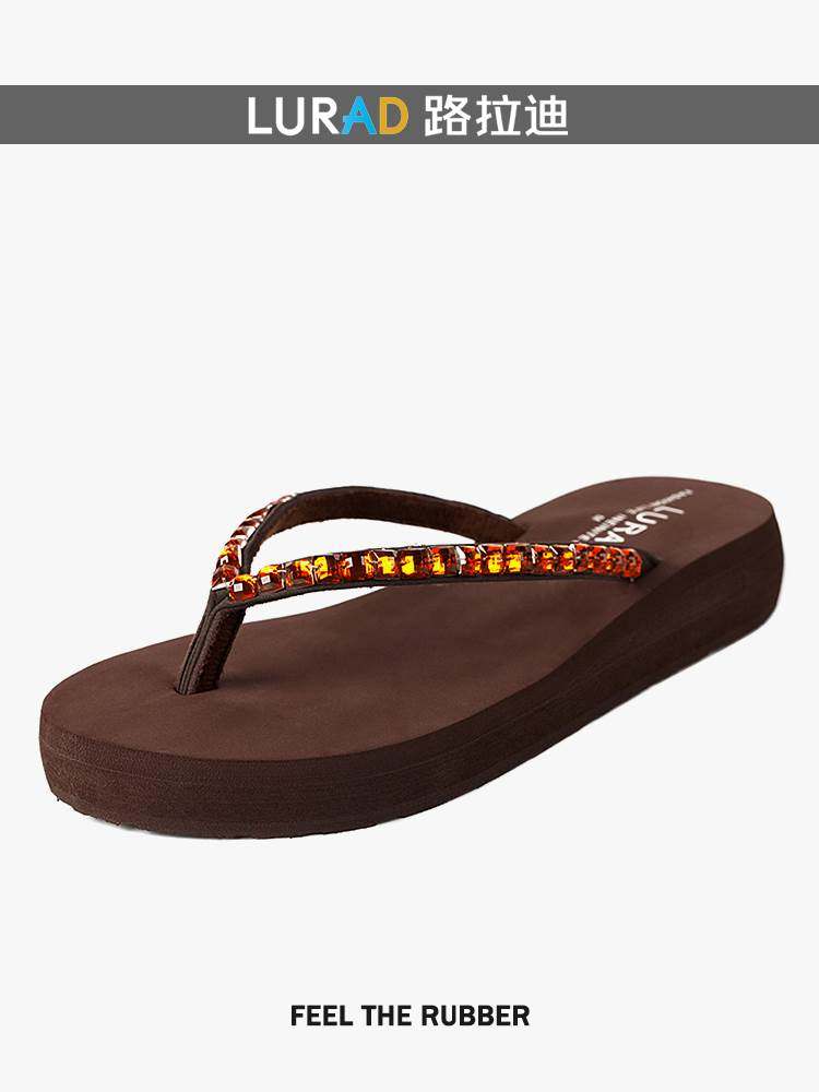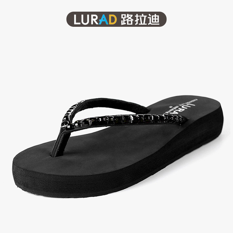 路拉迪高跟人字拖鞋夏季女士厚底坡跟时尚潮水钻夹拖防滑沙滩凉拖