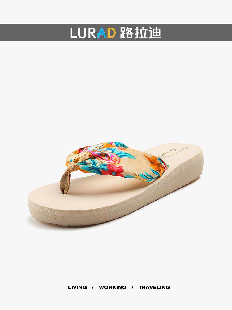 路拉迪女士人字拖中跟厚底坡跟防滑夏季夹拖凉拖鞋波西米亚沙滩鞋