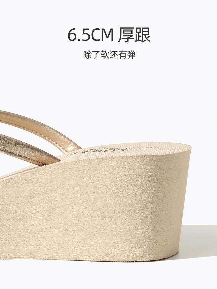 路拉迪简约中跟人字拖女夏季厚底外穿夹脚凉拖鞋米色坡跟沙滩鞋潮
