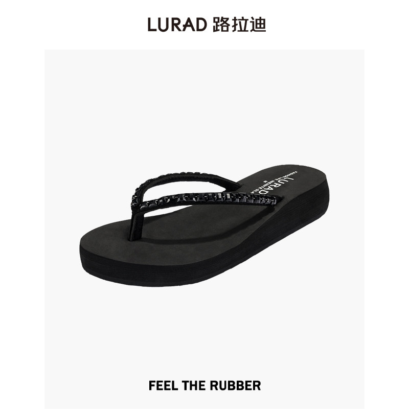 路拉迪人字拖女夏季简约中跟人字拖厚底外穿夹脚坡跟凉拖鞋沙滩鞋