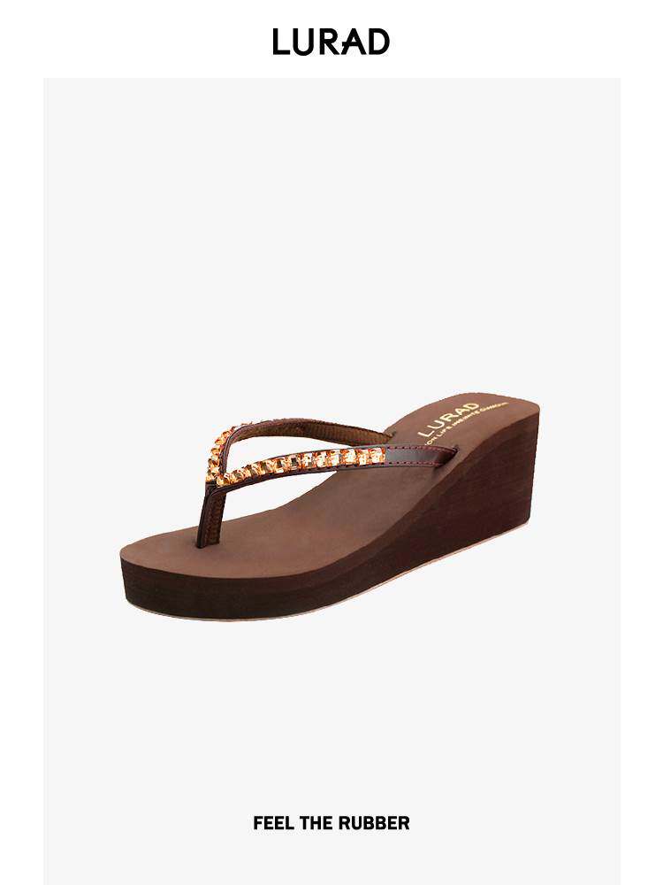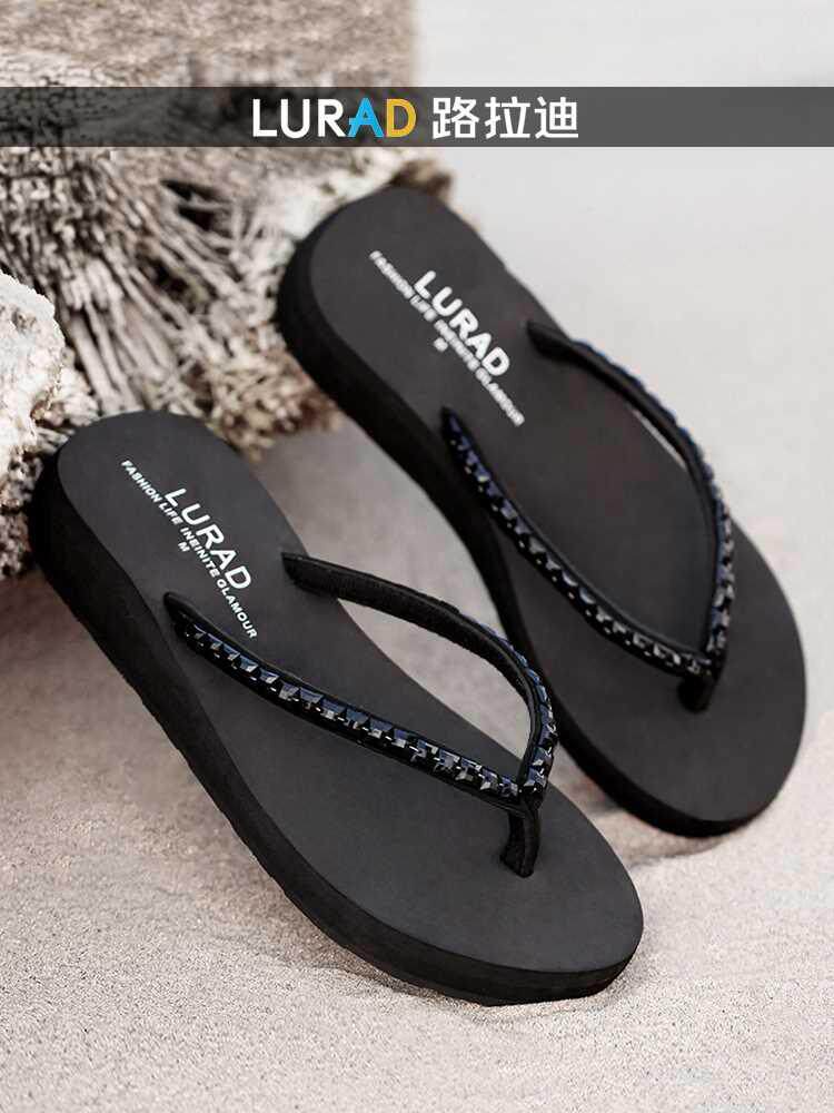 路拉迪高跟人字拖鞋夏季女士厚底坡跟时尚潮水钻夹拖防滑沙滩凉拖