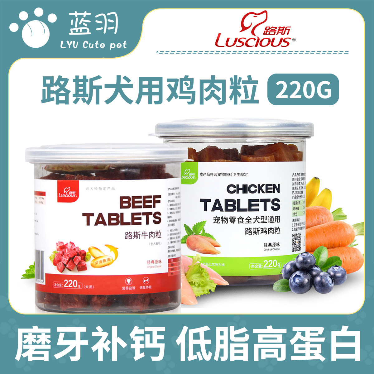 路斯宠物狗狗零食牛肉粒鸡肉干200g幼犬磨牙棒奖励泰迪金毛