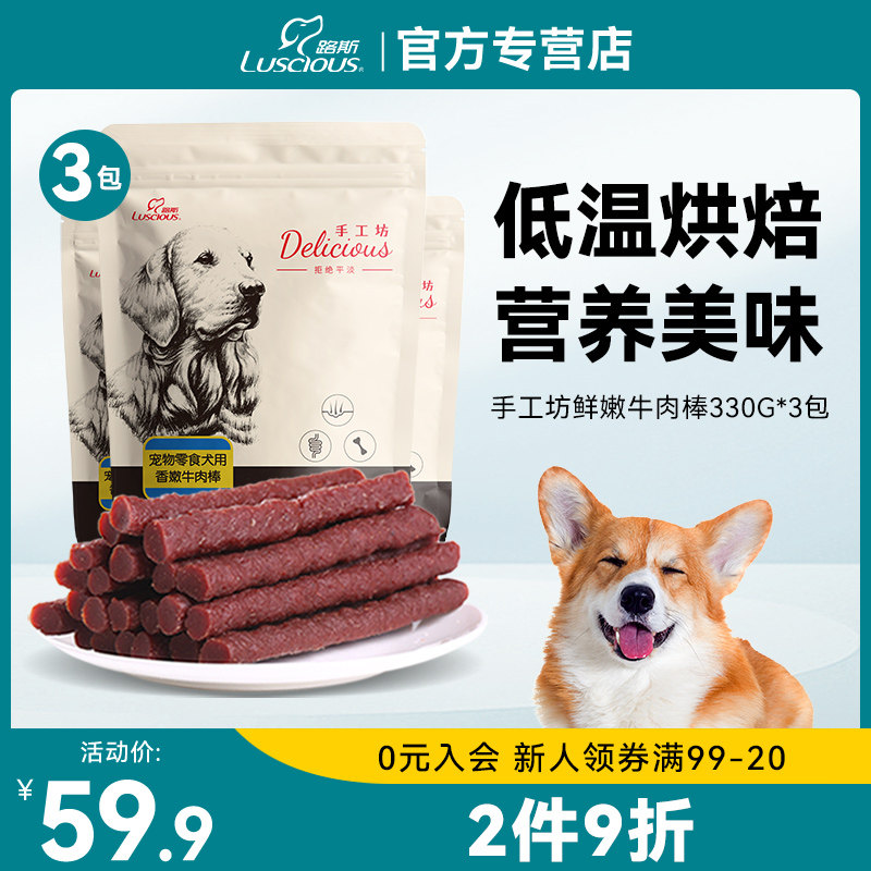 路斯宠物狗狗零食牛肉棒成犬幼犬磨牙洁齿泰迪金毛牛肉干990g