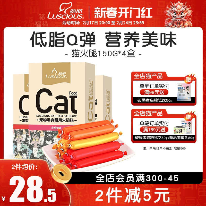 路斯猫咪零食火腿肠4盒幼猫成猫香肠美味多肉营养促进增肥发腮