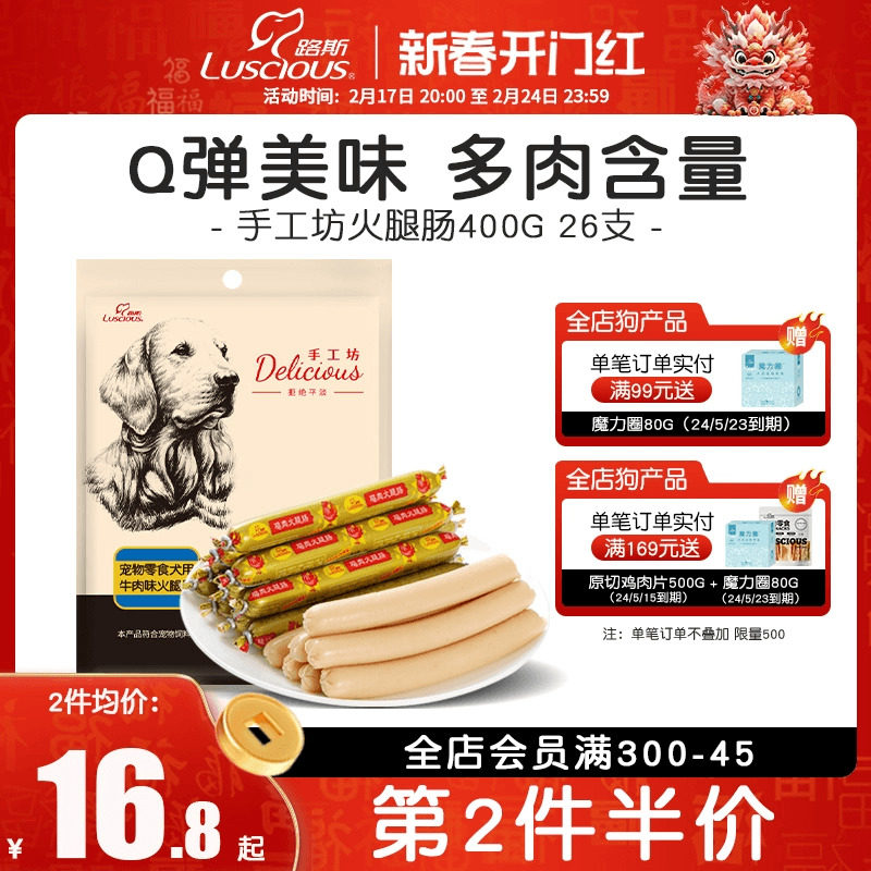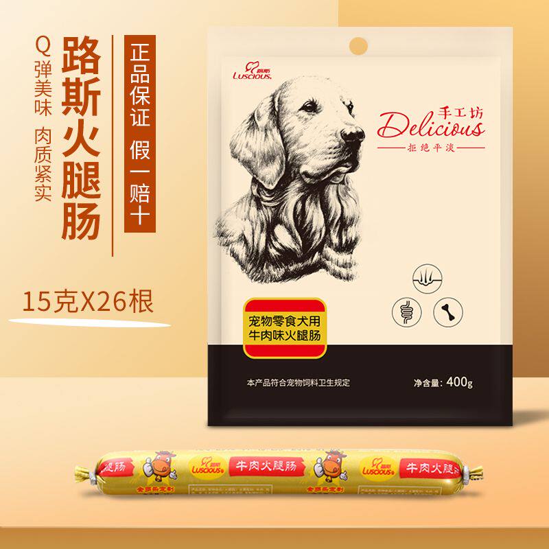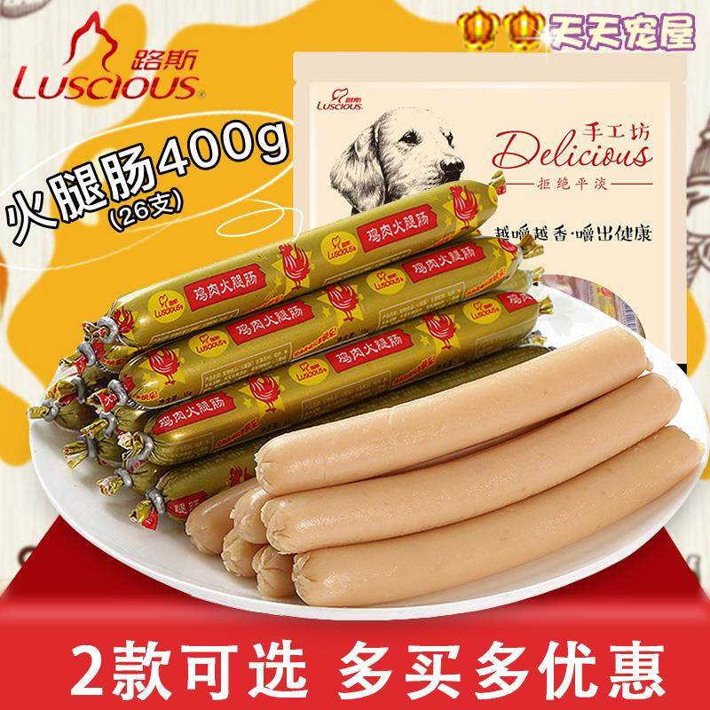 狗香肠 路斯狗零食金毛幼犬泰迪狗狗鸡肉牛肉火腿肠400g宠物食品