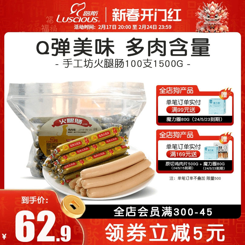 路斯鸡肉火腿肠100支成幼犬小型犬宠物狗狗零食泰迪金毛奖励香肠