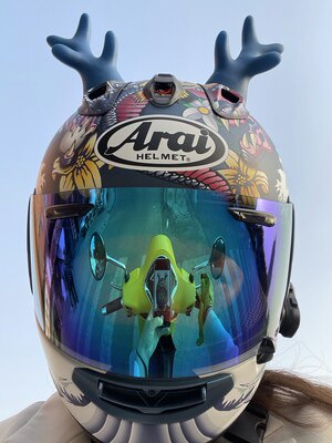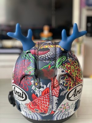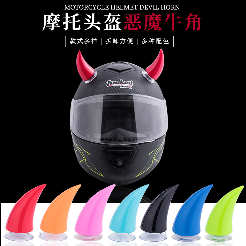 摩托车头盔恶魔角牛角仿真吸盘超轻骑士炫酷机车全盔恶魔犄角装饰