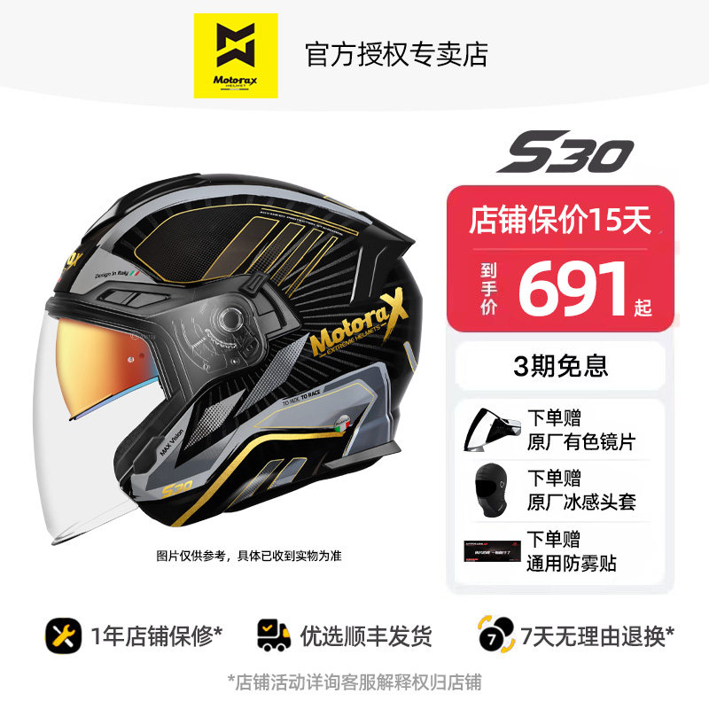 摩雷士S30四分之三盔摩托车头盔双镜片半盔四季3/4盔MOTORAX锦鲤