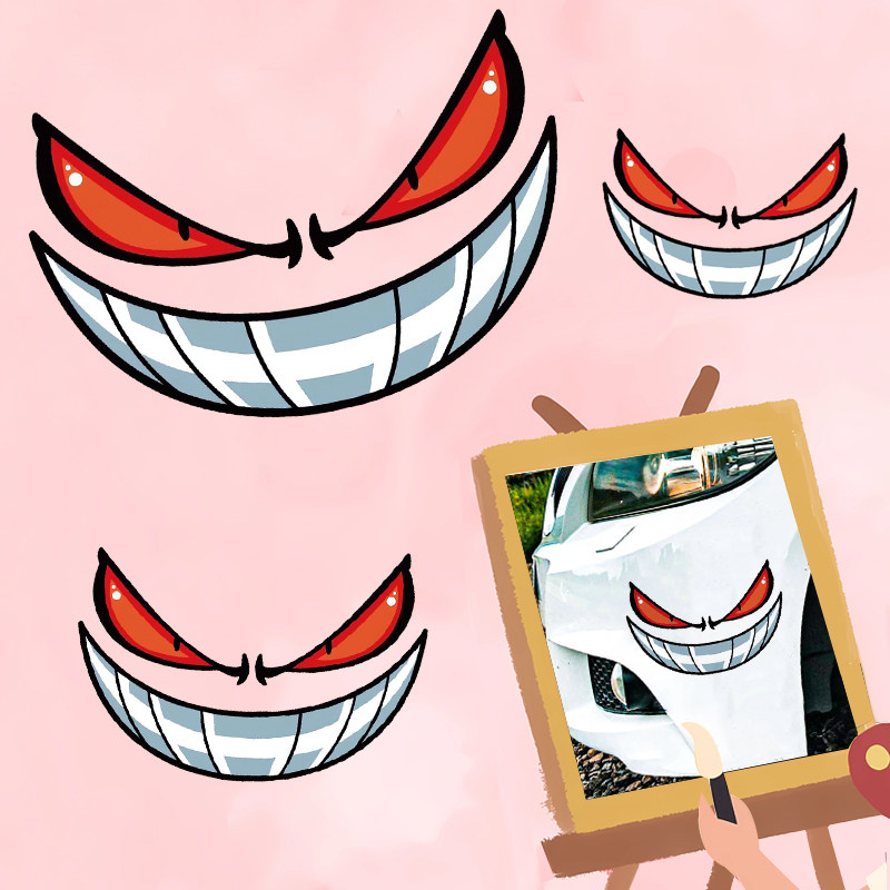 恶魔眼睛汽车贴纸个性表情装饰贴电动机车摩托车头反光贴防水贴