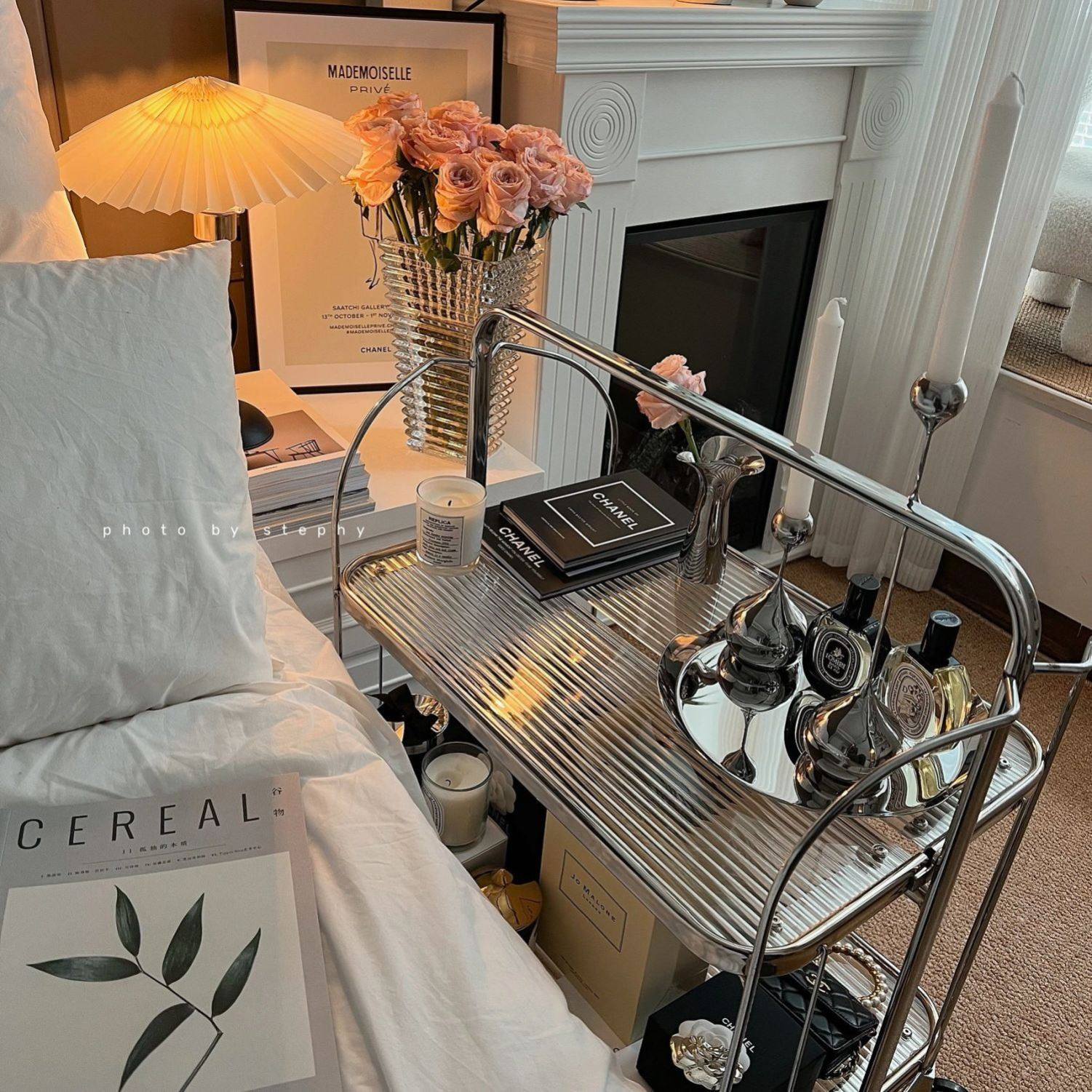 轻奢沙发边几可移动玻璃茶几边柜创意小桌子客厅边桌小推车置物架