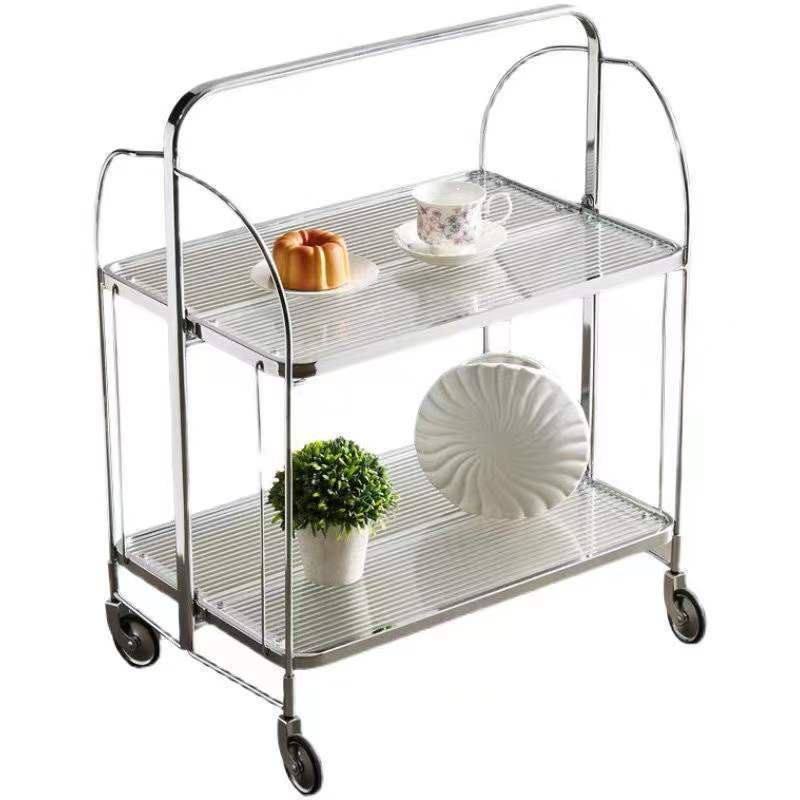 中古推车可折叠移动美容推车酒水餐车网红ins透明玻璃置物架零食