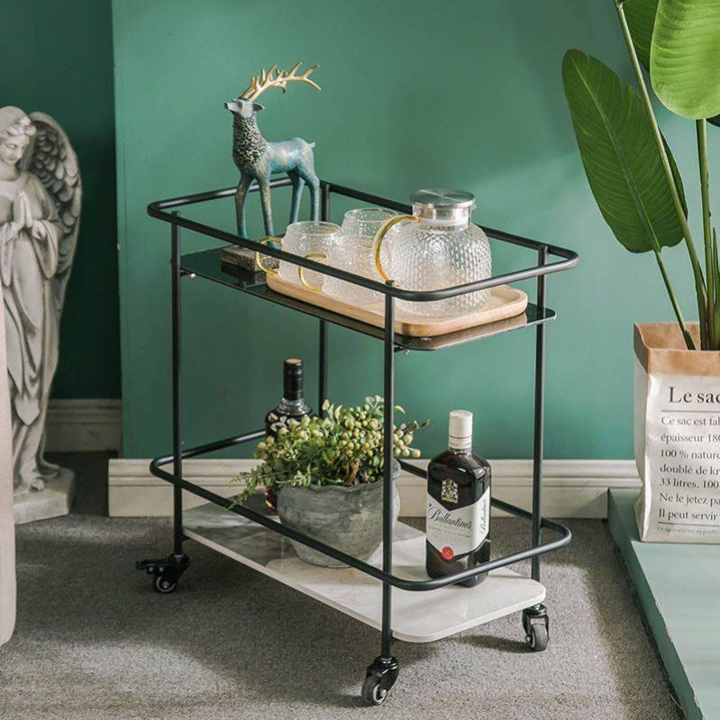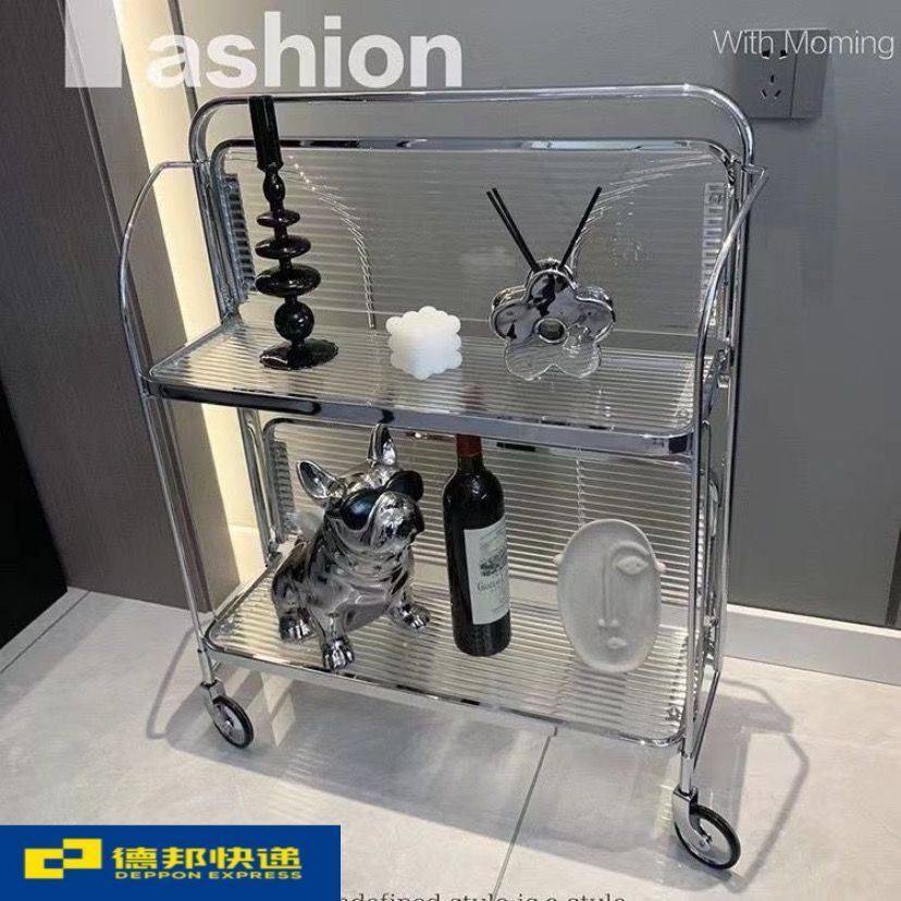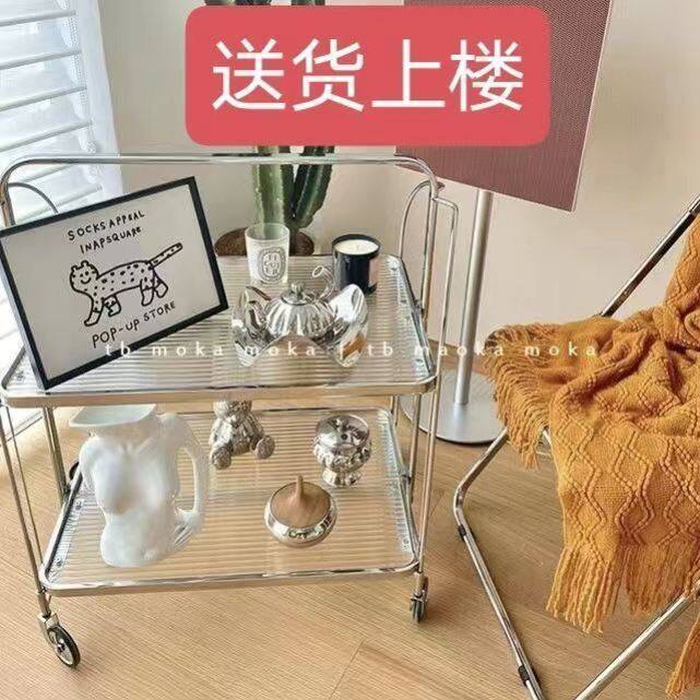 中古推车可折叠移动玻璃推车酒水餐车网红ins透明玻璃置物边茶几