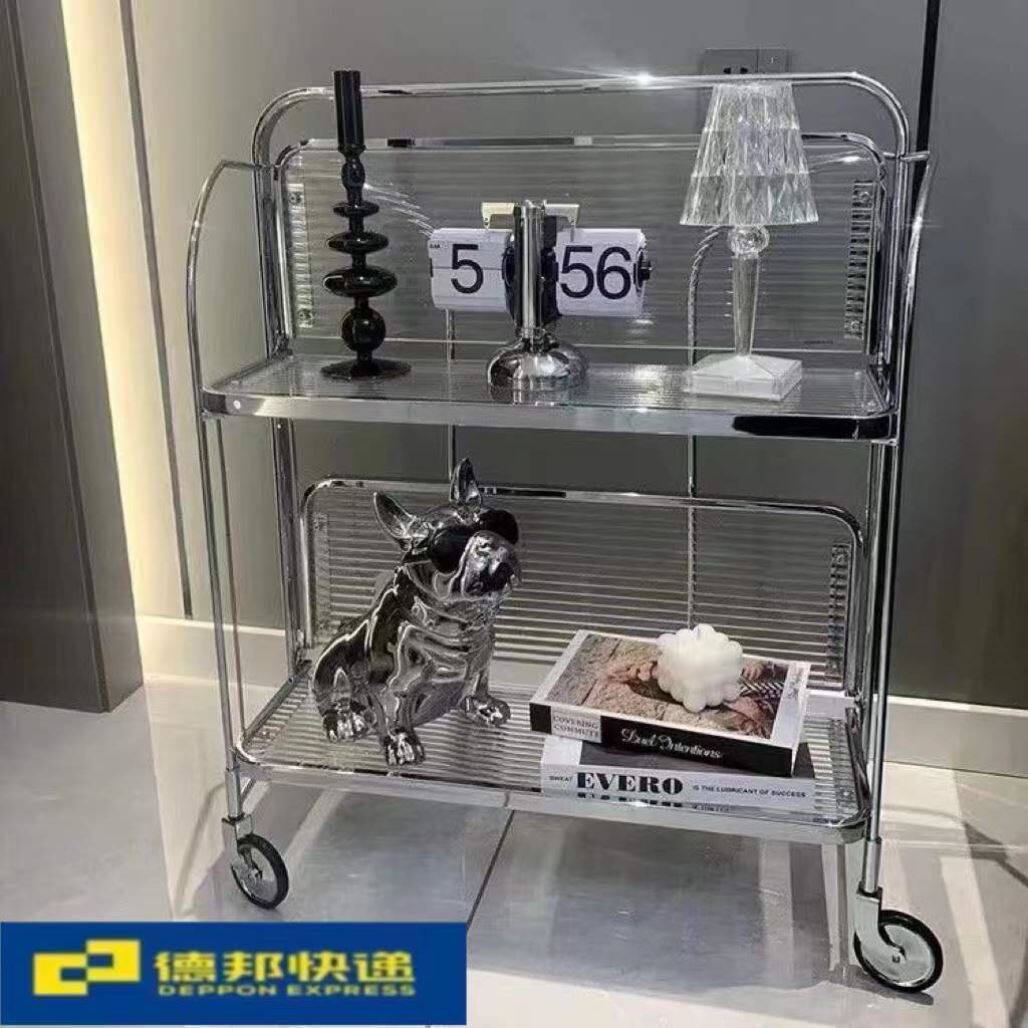 中古推车可折叠移动玻璃推车酒水餐车网红ins透明玻璃置物边几
