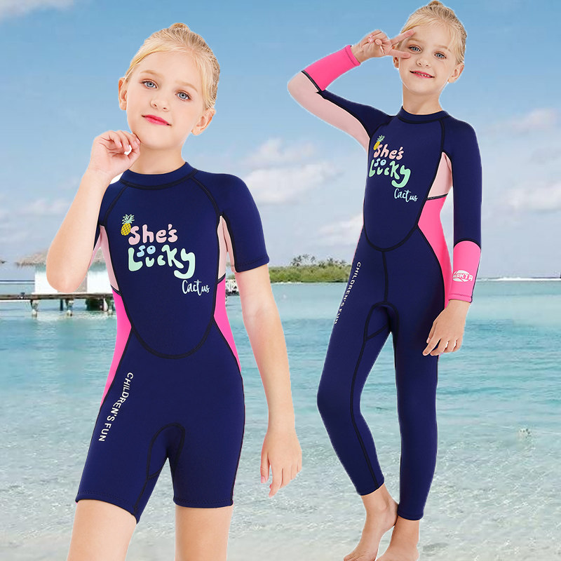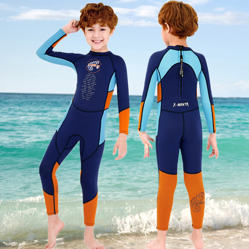 2.5MM儿童潜水服女童男孩加厚保暖速干长袖连体游泳衣浮潜水母服