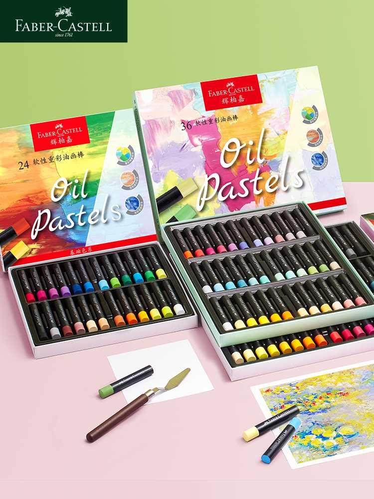 德国辉柏嘉重彩油画棒套装36色24色马卡龙学生美术生专用绘画专业级软性涂鸦莫兰迪蜡笔油性水溶性刮刀专用纸