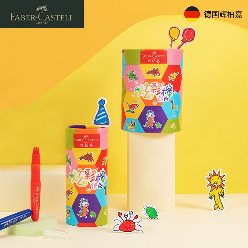 德国辉柏嘉炫彩棒12色24色水溶性可旋转油画棒套装幼儿园儿童涂色蜡笔宝宝彩色画画笔可水洗重彩绘画工具