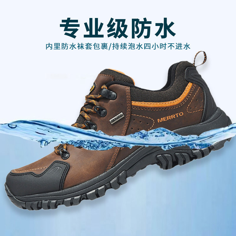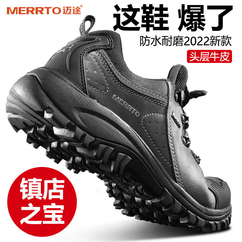 迈途真皮防水鞋男女雨天防滑耐磨徒步登山鞋户外鞋透气休闲运动鞋