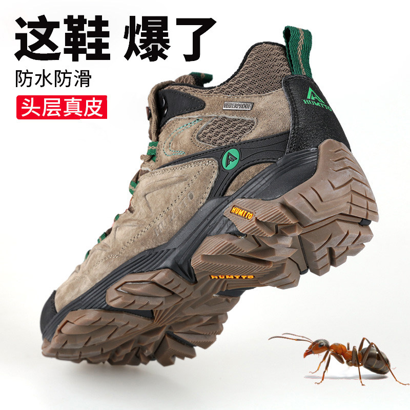 悍途头层牛皮防水登山鞋男高帮防滑耐磨爬山鞋履女户外运动徒步鞋