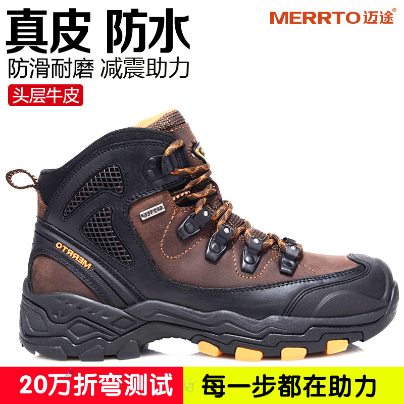 迈途真皮防水防滑登山鞋男鞋头层牛皮户外鞋耐磨爬山鞋运动徒步鞋