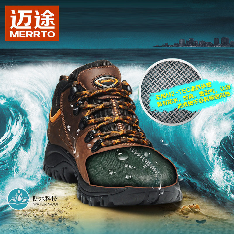 迈途防水登山鞋女防滑耐磨户外运动鞋男真皮徒步鞋牛皮休闲旅游鞋