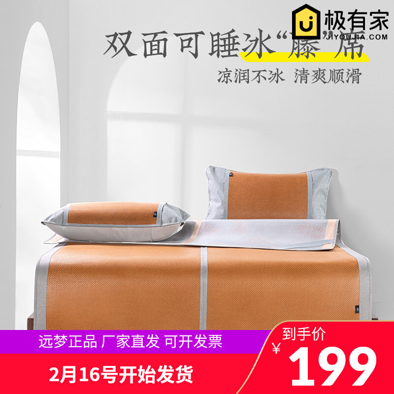 远梦凉席夏天冰藤席冰丝席学生宿舍单人席子三件套折叠空调席藤席