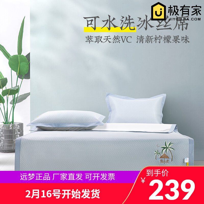 远梦清柠凉丝席三件套可折叠水洗爽滑冰丝席1.5/1.8m夏凉空调席子