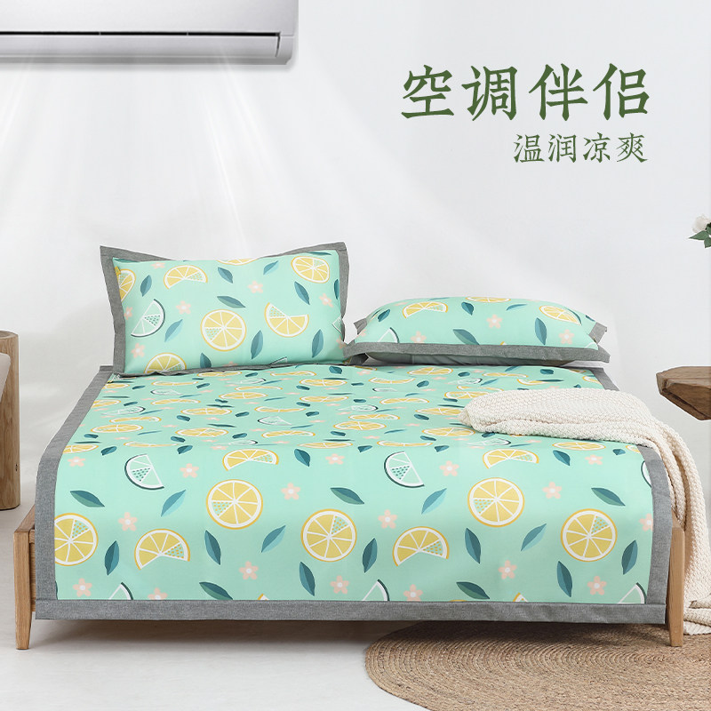远梦清柠凉丝席三件套夏季凉感冰丝席可机洗可折叠空调凉席透气席