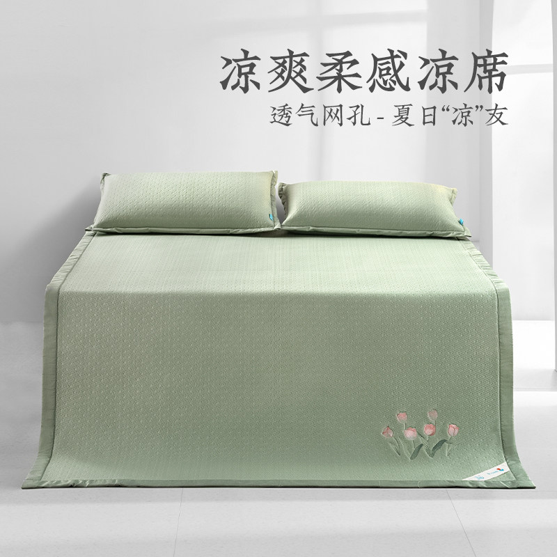 远梦凉席清柠凉丝席三件套席子亲肤舒适冰爽冰丝空调夏凉席刺绣