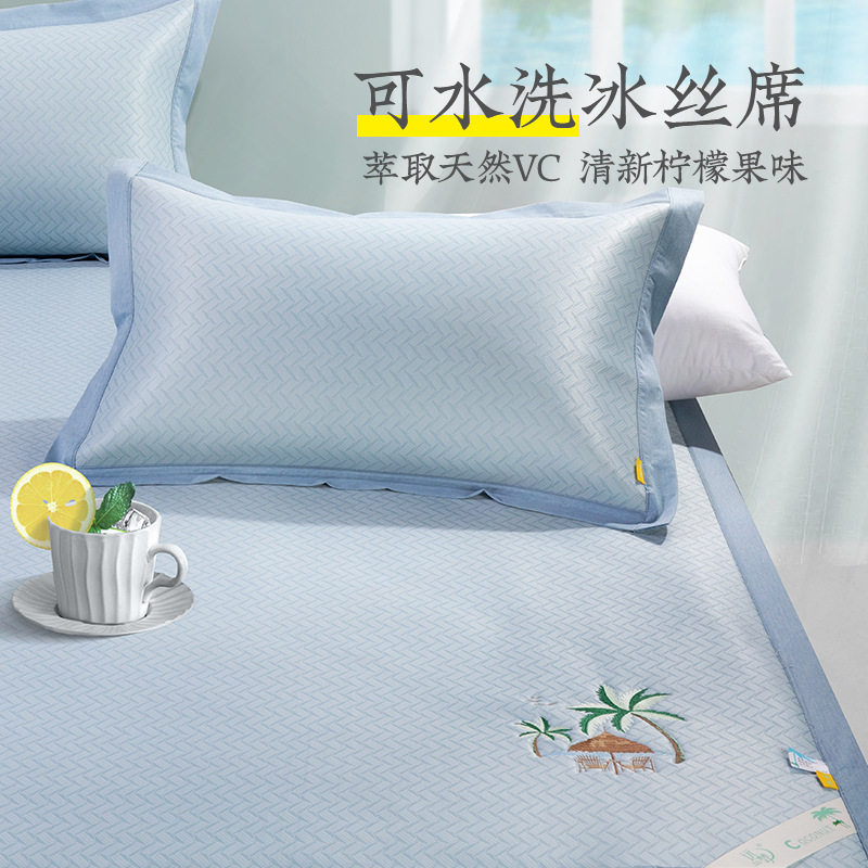远梦冰丝席三件套冰柠凉席套件刺绣清新风夏季凉感席子现货