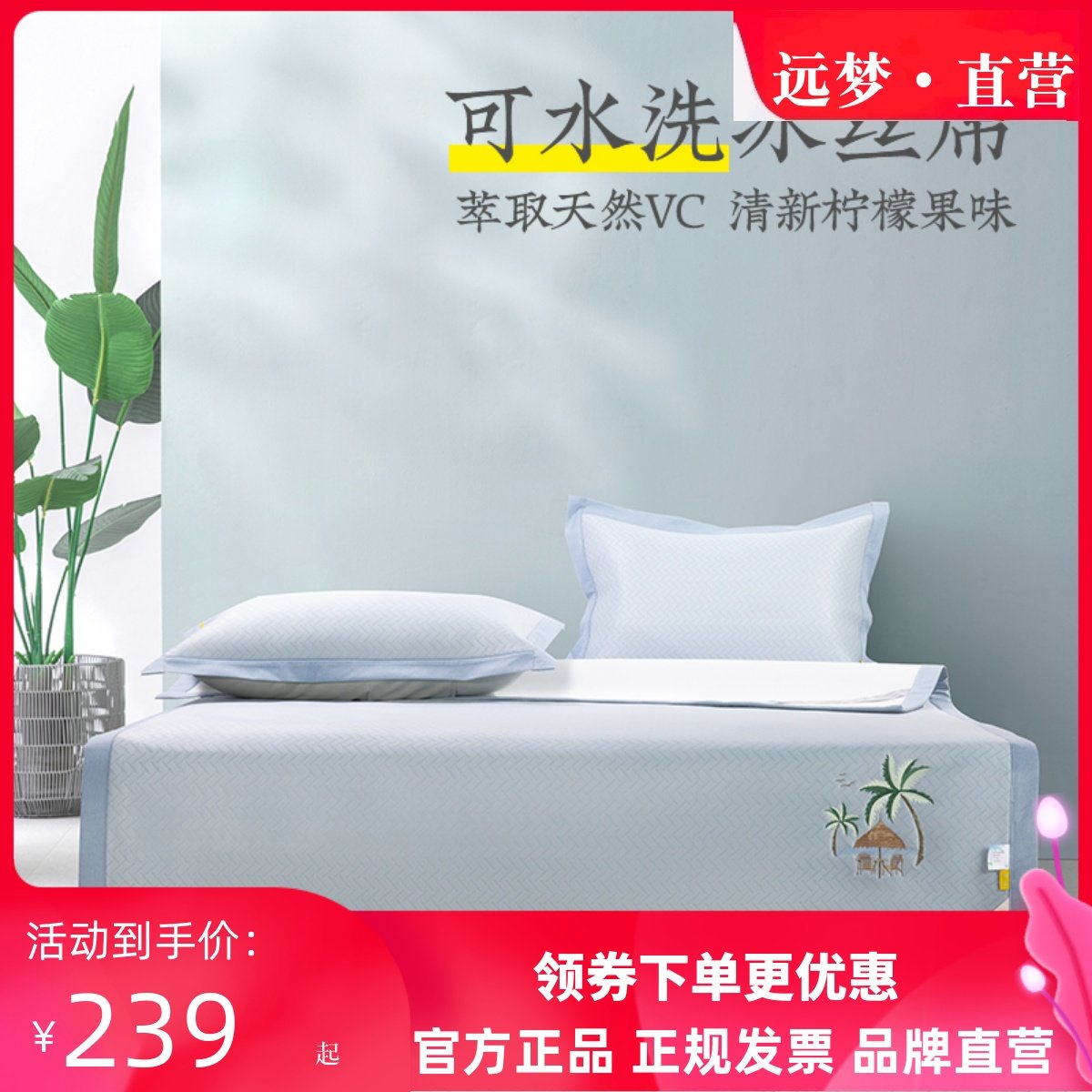 远梦清椰柔感凉席三件套1.5/1.8m床柔软夏季冰丝席可水洗空调席子