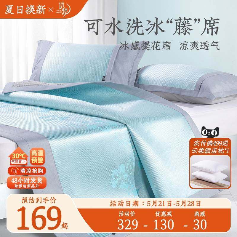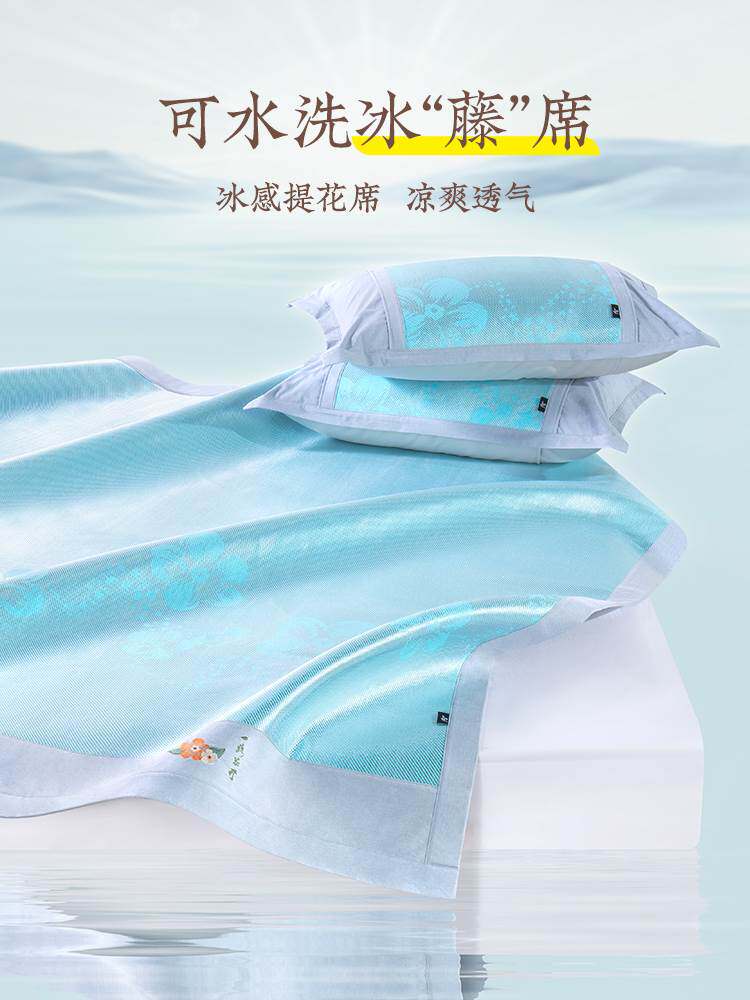 远梦夏清柔感凉席冰丝席三件套冰爽夏天空调席子凉席可折叠可水洗
