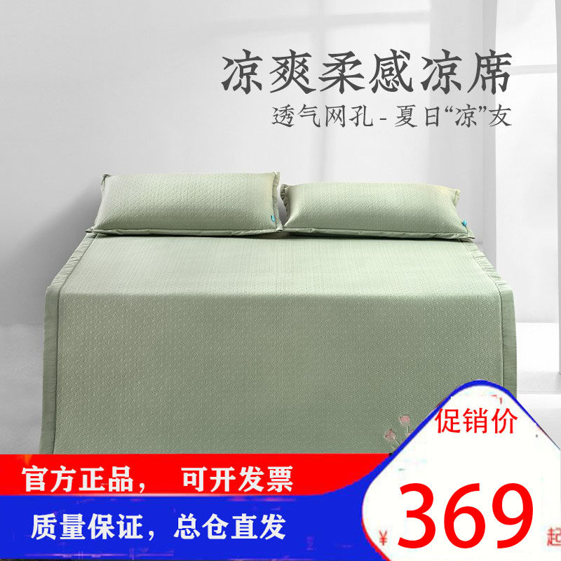 远梦凉席生态凉感乳胶软席三件套可水洗可折叠空调席夏季冰丝席子