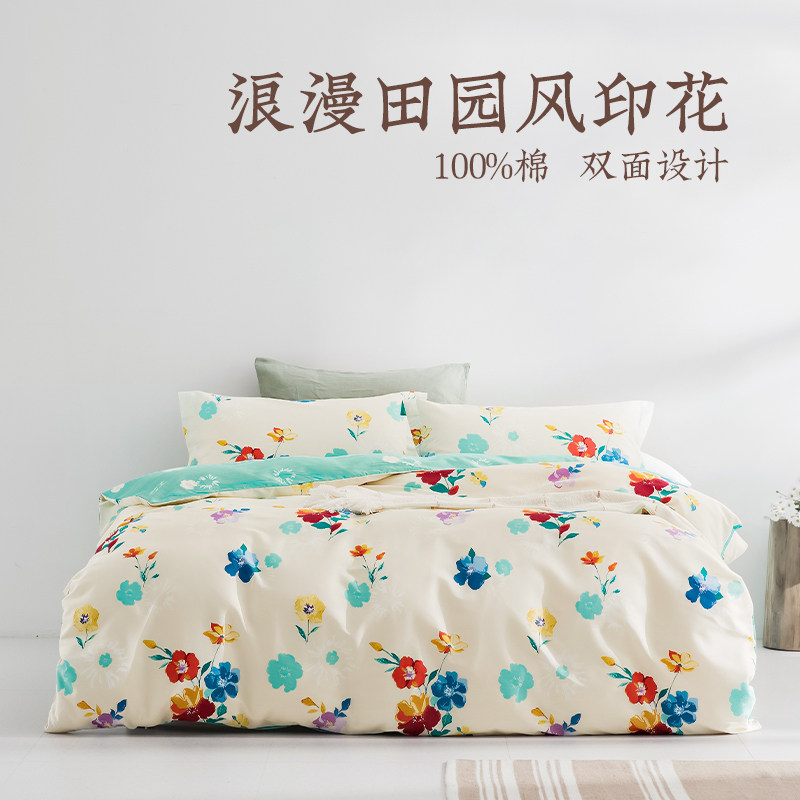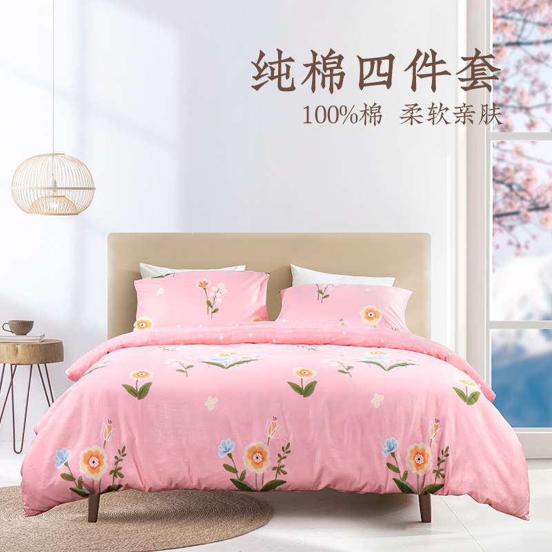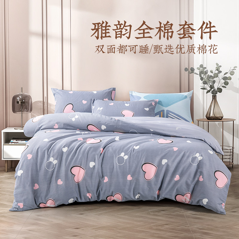 远梦雅致生活纯棉床单四件套学生宿舍被套印花简约家用亲肤双人