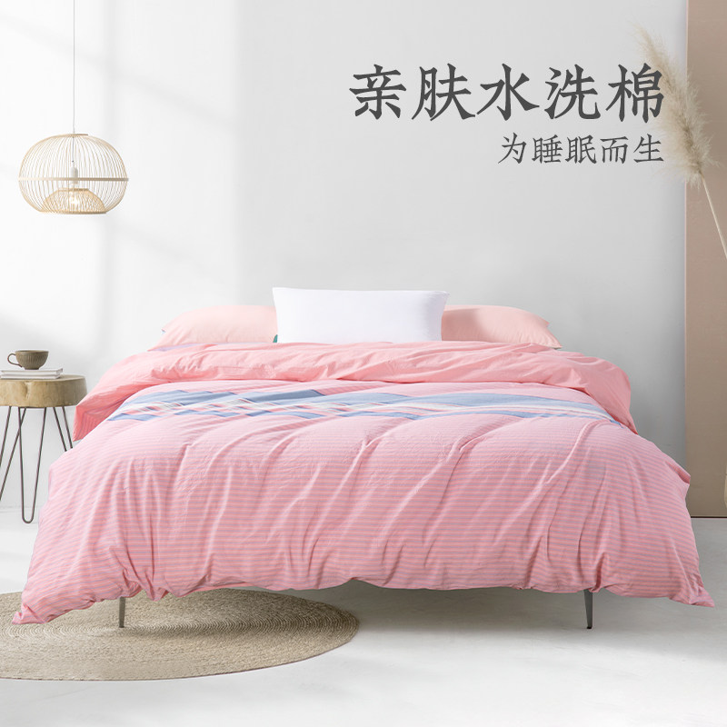远梦家纺水洗棉三件套学生宿舍床上用品纯棉四件套全棉被套床单款
