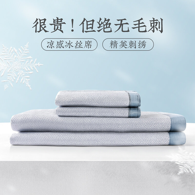远梦家纺冰丝席三件套夏季床单凉席空调席凉感学生宿舍可折叠席子